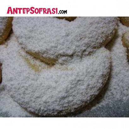 - Badem hariç bütün malzemeler yumuşak bir hamur olacak şekilde karıştırılır.(Hamurun sert olmamasına dikkat edelim) Hazırladığımız hamur badem veya fındık eklenerek yoğrulur. Küçük bezeler alınarak ay şekli verilir. Az ısıtılmış fırında 150 derecede üstü pembeleşmeden (15 dakika kadar) pişirilir. Ilıkken üzerine bolca pudra şekeri dökülür. Servise sunulur. Afiyet olsun.