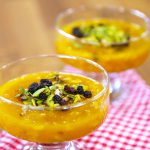 Zerde, daha önce verilen tarifteki gibi pişirilir. Pişen zerde, 8 tane sütlaç kasesinin yarısına kadar doldurulup, iyice soğutulur. Zerde bir gece önce pişirilirse daha da iyi olur.