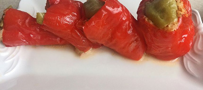 Zeytinyağlı kırmızı biber dolması hazırlanışı